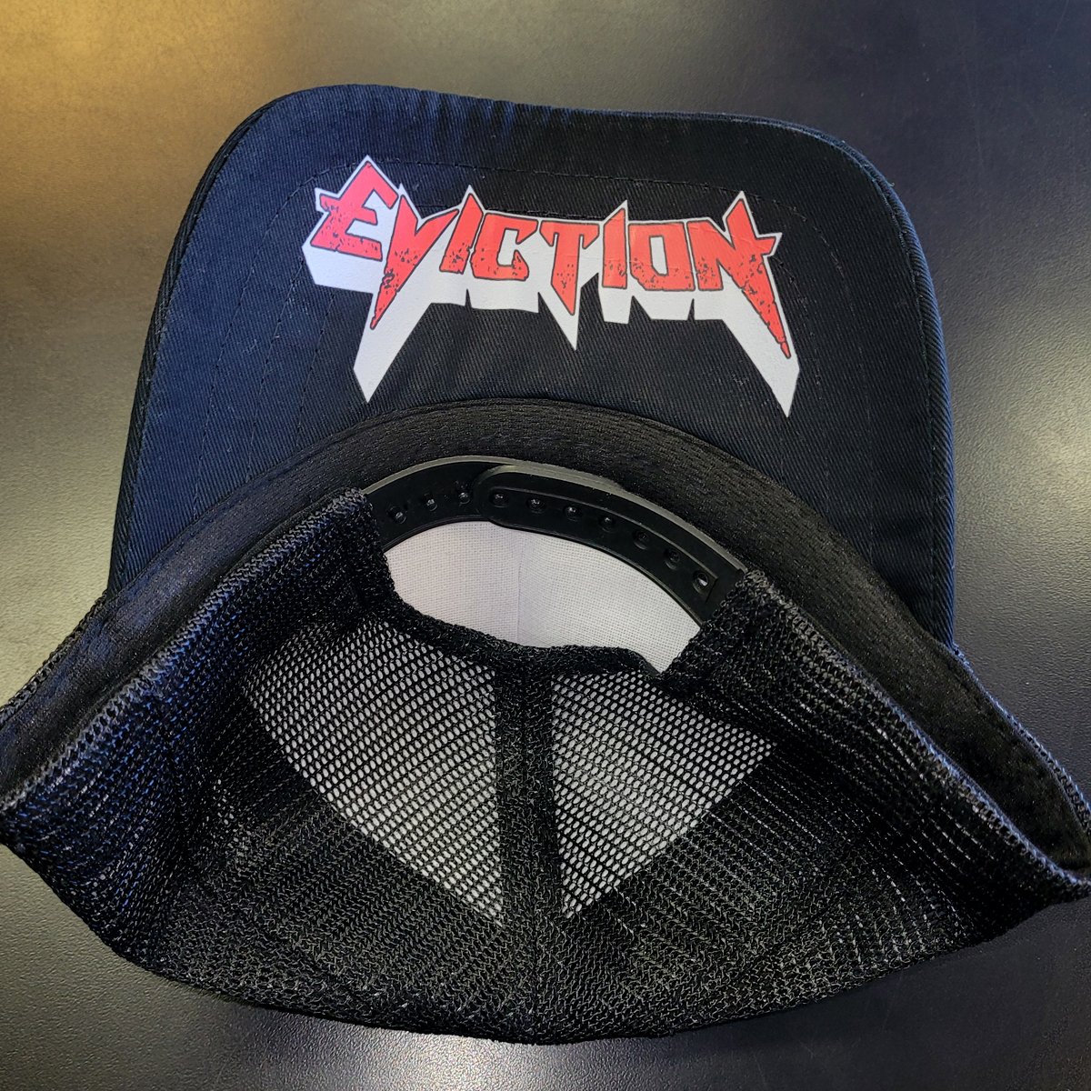 Black Eviction Mosh Ka Teer Club Hat. snapback hat with Eviction logo under the bill.