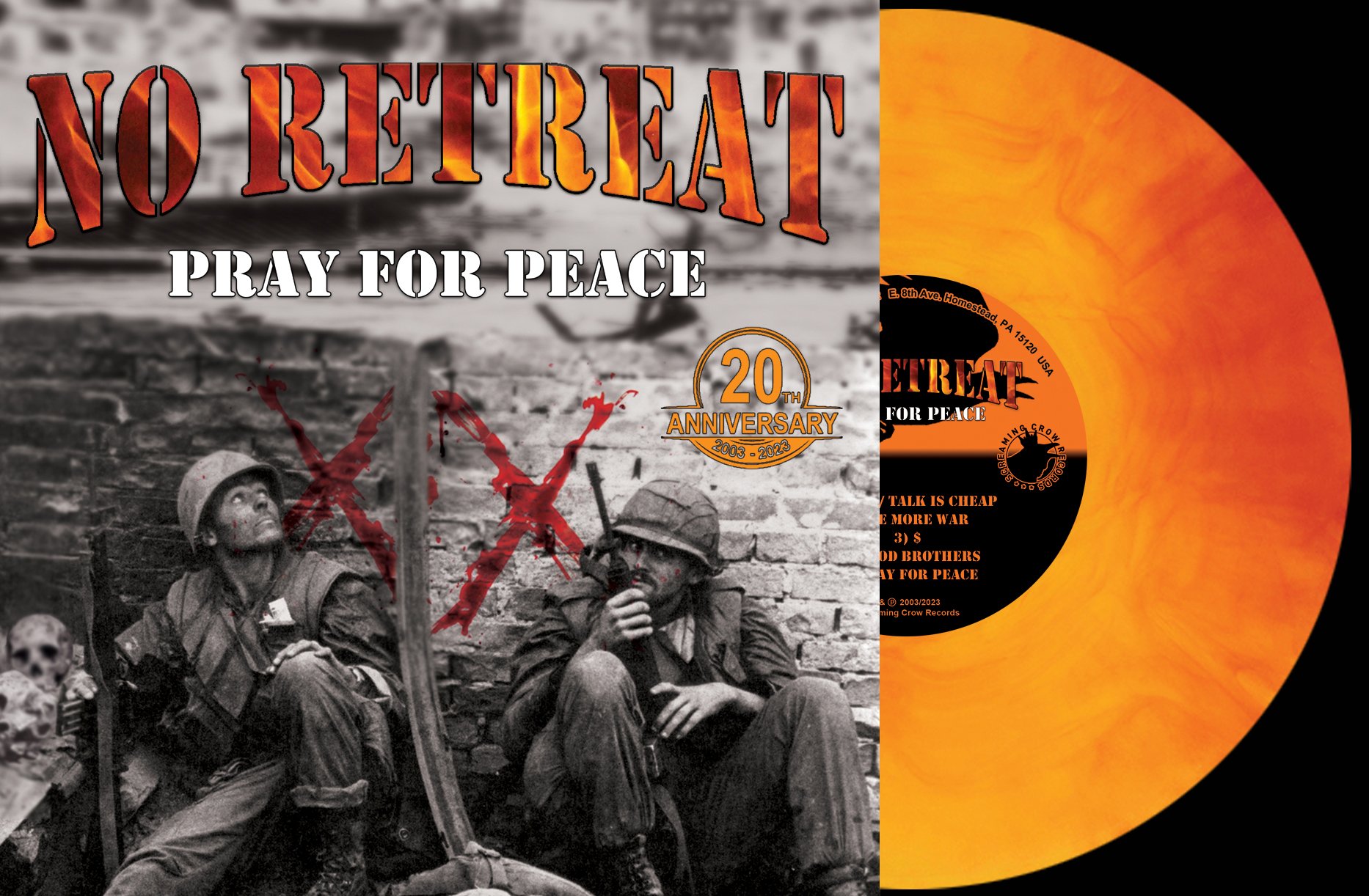 No Retreat "Pray For Peace" 20th Anniversary Edition (Screaming Crow) Only 5 Orange Fire left!