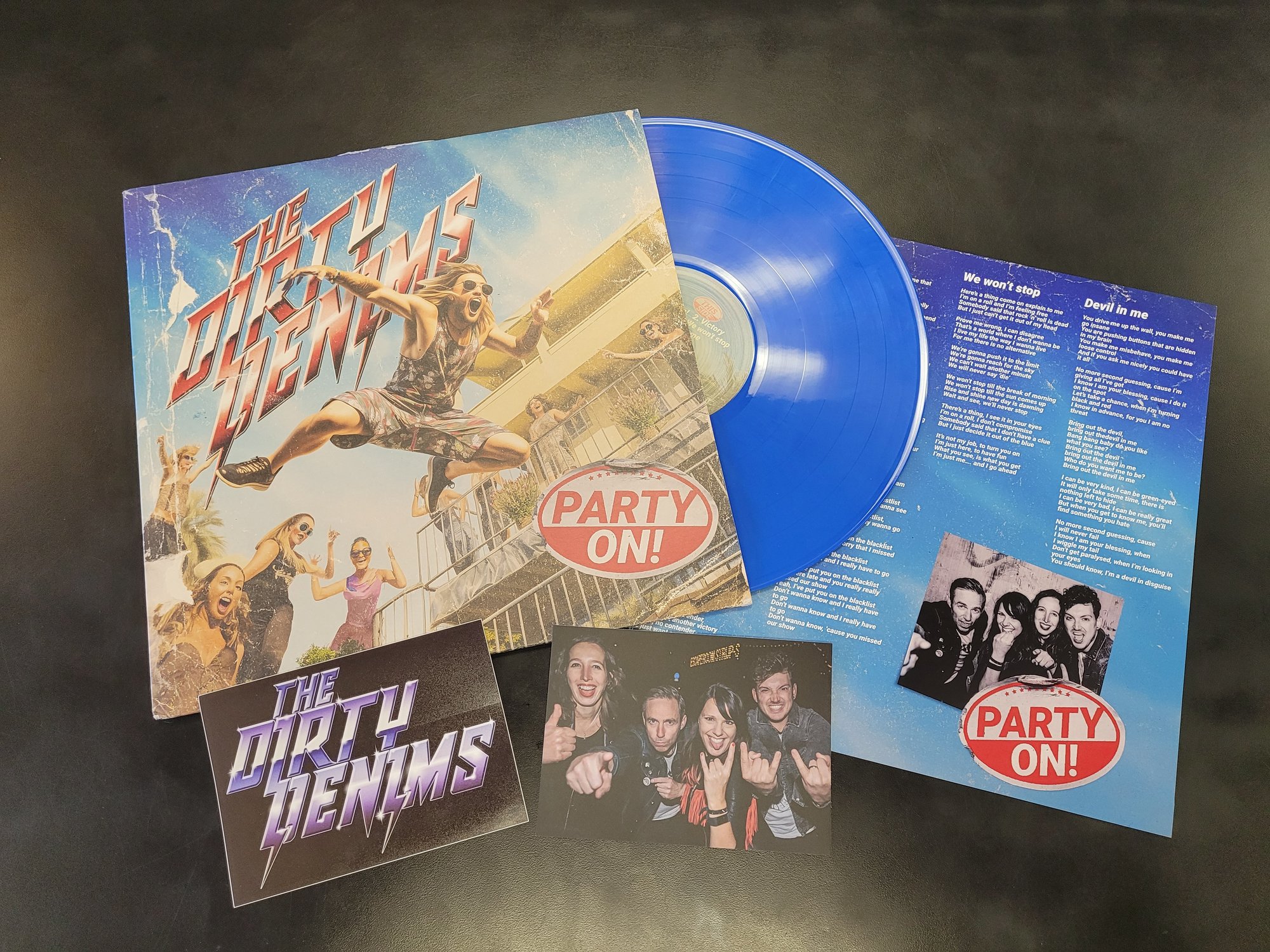 Package includes blue Marble vinyl, lyrics insert as well as a Dirty Denims sticker and postcard.