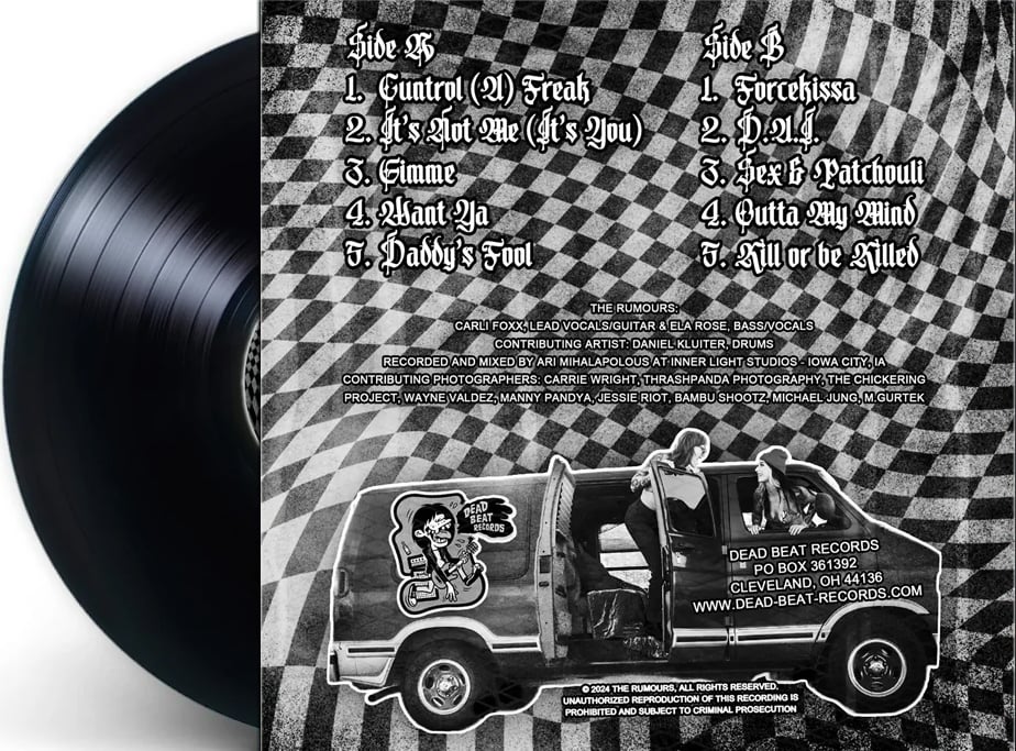 The Rumours- Kill Or Be Killed LP. Hell ya, the bad bitches of Rock ‘n Roll return! Waterloo’s The Rumours have been grindin’ for nearly a decade carving a pretty untouchable sonic trajectory prior to hitting their aural-apex stride on their third album ‘Kill Or Be Killed’. Through snarling vox, dirty guitars licks and a raw, pounding rapid-fire delivery, The Rumours sound like a ballsy combination of AC/DC, Girschool, Mötley Crüe and Nashville Pussy spewing a thunderous, supercharged dose of venomous riff Rock. Melodic, yet tough and aggressive, ‘Kill Or Be Killed’ showcases The Rumours signature blend of Metallic Rock ‘n Roll exploding with nasty riffs and catchy melodies played with their uniquely ferocious, nasty prowess. And to top it off the LP also includes a photo collage insert pictorially showcasing The Rumours glorious and story-filled life on the road.